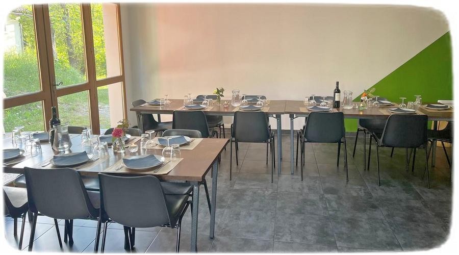 Avec ou sans repas, notre offre est destinée aux groupes de 10 à 64 personnes et est proposées en trois formules pour des séjours hors juillet et août ... Formule 24 à 60 personnes en gestion libtre ou avec service traiteur. NB : En juillet et août, vous pouvez réserver plusieurs gîtes pour votre grande famille ou avec vos amis sur base des conditions ordinaires. Possibilité de location d'une ou des deux salles ainsi que de la cuisine sur réservation anticipée avant le séjour. Pour une réservation multiple, il est cependant impératif de prendre contact au 04 48 25 00 05 ou via contact@48110.fr . |